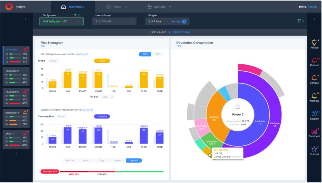 DDN Insight offers visibility into your entire environment, enabling you to monitor operations, track resource utilization, and proactively address potential challenges before they impact your business.